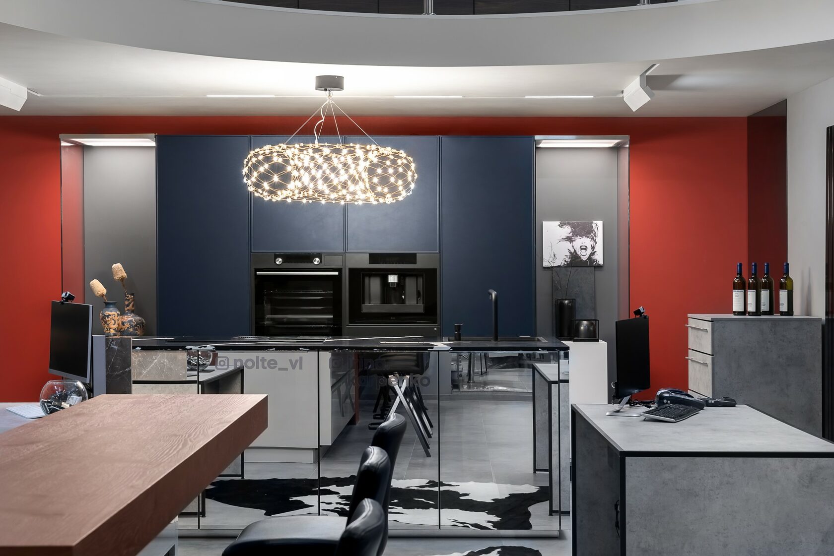 Neo+Carisma – воплощение инновационного взгляда на стандартную планировку прямой кухни с островом. Наполнение пеналов – встроенная посудомоечная машина, комбинация холодильника и морозильной камеры с электрическим приводом открывания – никого не оставят равнодушными. В острове располагается вытяжка напольного монтажа, встроенная в варочную панель. А зеркальные фасады будут притягивать взгляды и создадут в интерьере гармоничную иллюзию иного пространства.